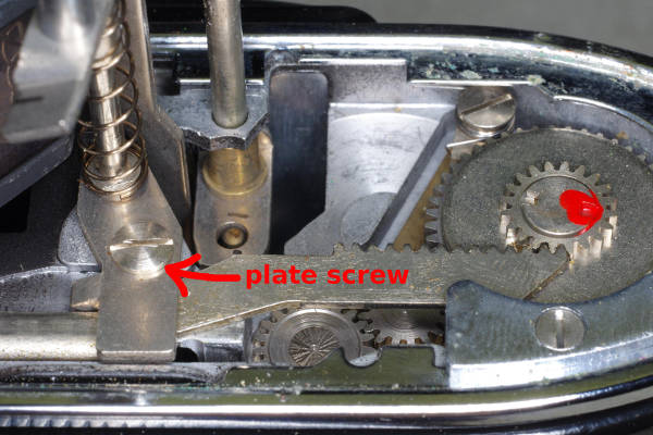 Be careful to maintain the proper mesh of the toothed plate and the gear it drives.