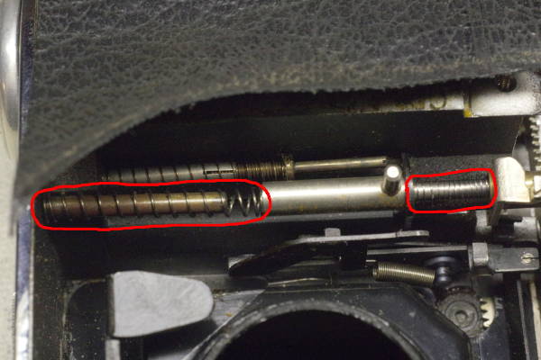 Cock the shutter using the advance lever. If you see that it does not cock far enough, peform the following steps:
