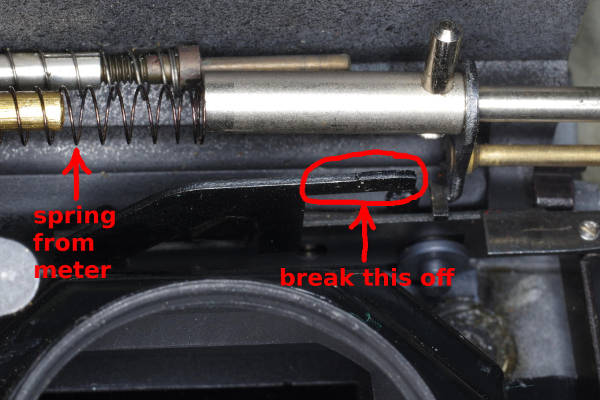 As seen in this photo, the spring from the meter can push the release shaft far to the right,