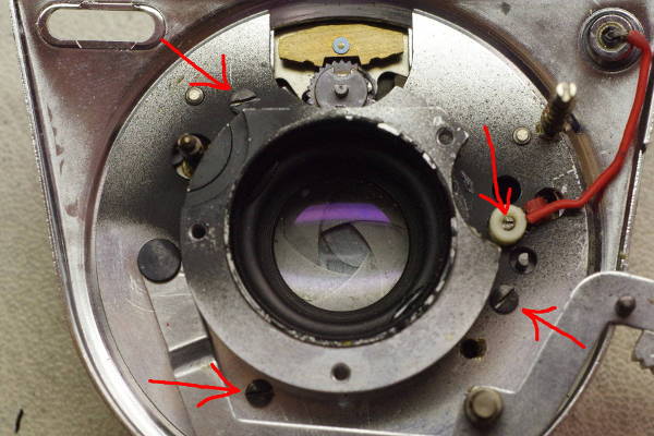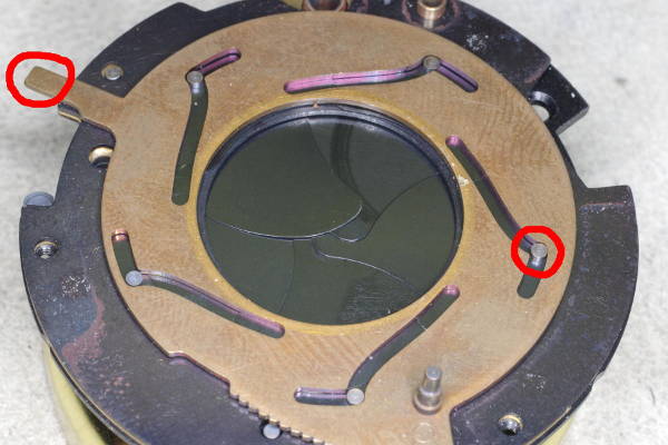 WARNING: Nothing holds the aperture assembly to the shutter housing! So disassembly