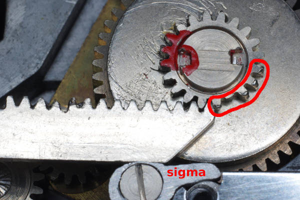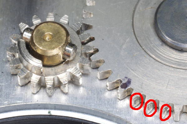 Warning: Be careful to maintain the original alignment of the gear-teeth in this photo. |