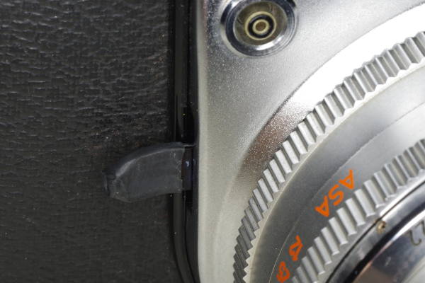 The Retina Automatic III was manufactured in two major variants. The second version has a longer meter cell than the first, making the variant obvious. I have found that meter cells in first version cameras are usually dead, while most meter cells in the second version are alive and appear to be close to accurate. Also, the second-version cells are more sensitive. Evidently, Kodak used a better cell in the second version. In addition, the second version added the annoying frame-1-lock feature found in the folding models that cause the frame-advance to lock when the frame-counter reaches 1. Kodak foolishly added this expense at a time of intense price-competition with Japan. Also, based on the serial numbers I’ve seen, it appears that late in production Kodak changed the advance-lever casting and put a plastic tab on it. In all variants, the rewind shaft is made of plastic, and the rewind knob cannot be raised for rewinding, making rewinding significantly slower than the folders. To my surprise, this raiseable-knob feature was also removed from the IIIS and IIS. The rewind knob was made thicker presumably in a feeble attempt to make rewinding less frustrating.