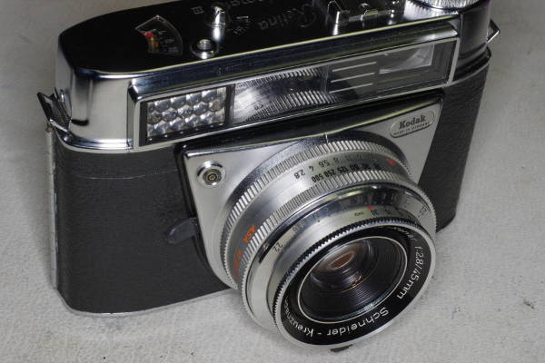 The Retina Automatic III has most of the features of the Retina IIS (which is a IIIS with a non-interchangeable Xenar). Both are well made and attractive, having sharp four-element Xenar lenses, very good VF/RF, manual control of speeds and apertures, built-in meter, and flash-sync. But most people avoid the Automatic III because it’s unreliable — most examples are inoperative. Also, its auto-exposure mechanism makes the camera too noisy due to a crude escapement at the back of the shutter, and the firing lever for the shutter requires much force to press, increasing muscle-shake. Those of us who are getting older already have too much shake; we don’t need more.