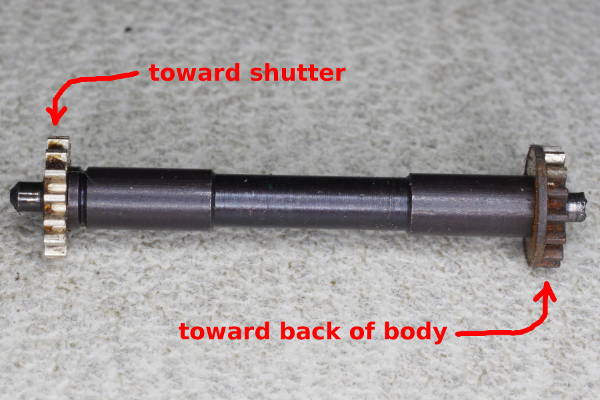 Some cameras have a washer on the other shaft as shown. If present, be careful to not let it come off. |