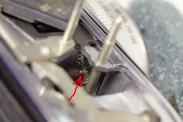 If teeth on the pinion are damaged (red circle), you can avoid them by rotating the pinion 180 degrees.