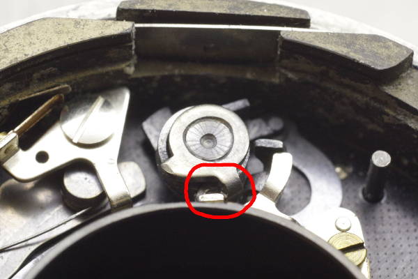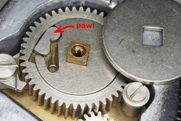 (rightward in the photo) by about 2 mm. This is the cocked position of the advance mechanism.