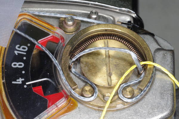 Place the coil spring that you removed from the meter onto the brass shaft at the