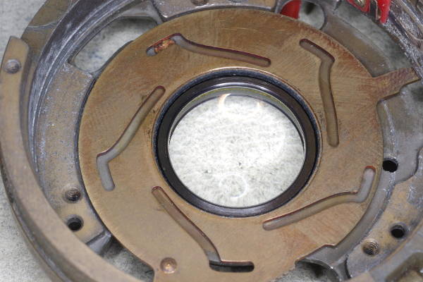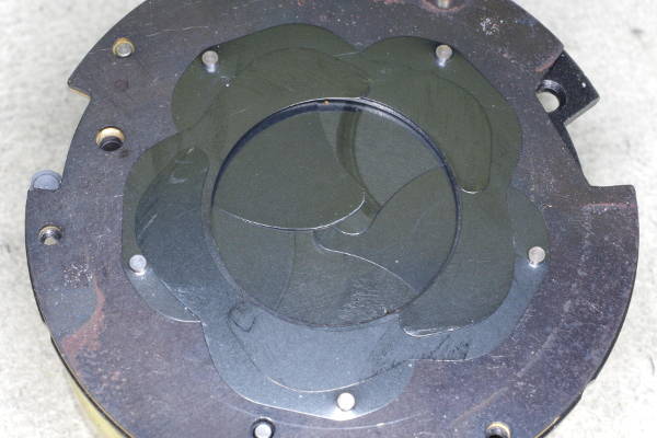 Lifting off the stator plate reveals the shutter blades. This photo also shows you the correct order of the blades.