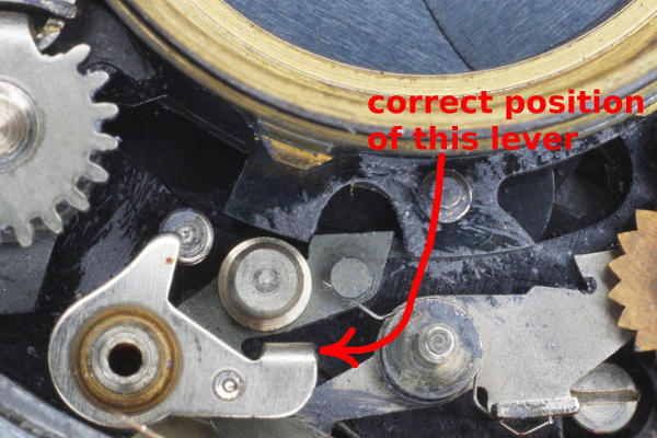 Here is the correct position of the lever on the left (that was mentioned in the prior step) which must be put back.