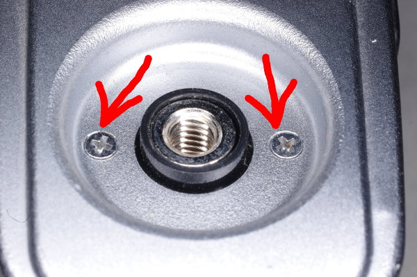 | Remove the bottom plate by unscrewing its two crosspoint screws. |
