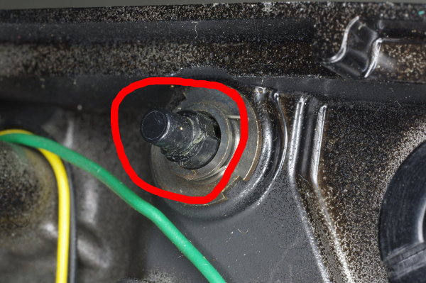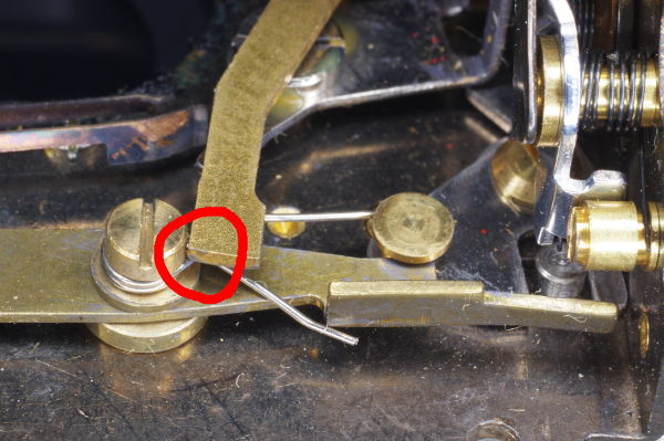 | Here’s an end-on view showing the lever touching the spring. |