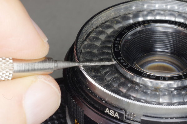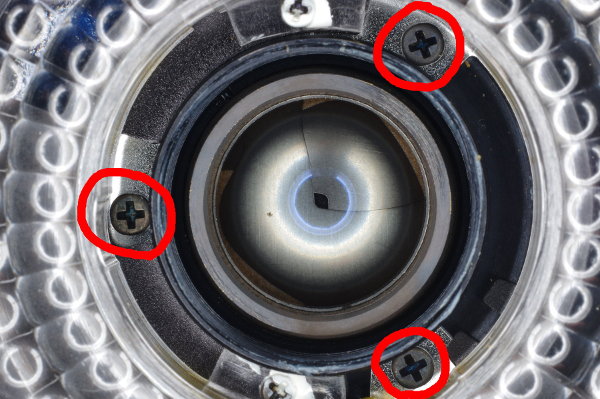 | Use a jeweller’s screwdriver to loosen the three set-screws on the inner focus-ring by two turns. Two turns is enough; you don’t need to remove these screws. |