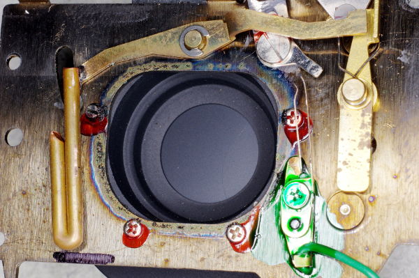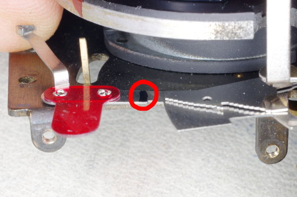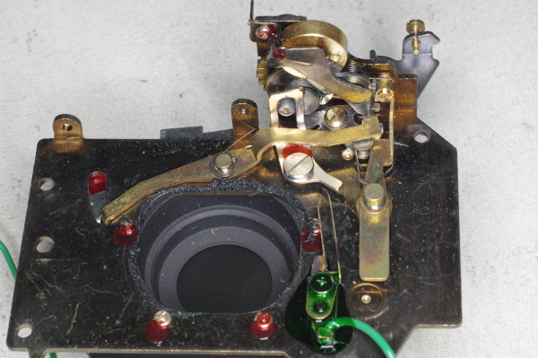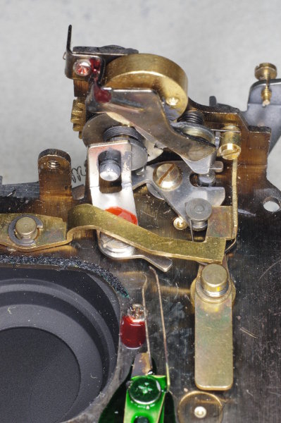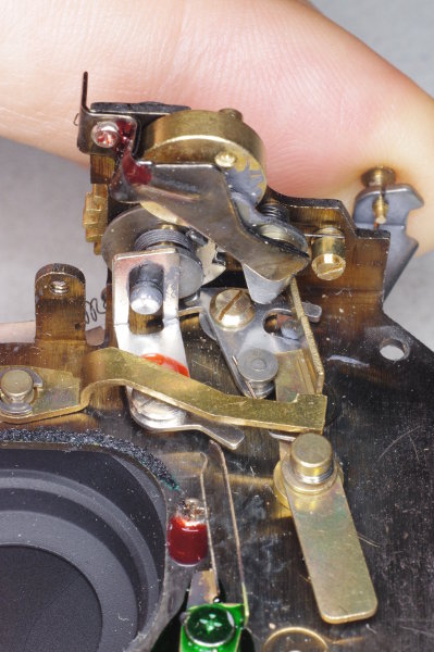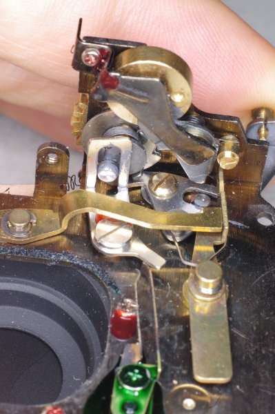 | At this point, let’s see how the low/high speed selection works. This is the underside of the shutter mechanism in its relaxed position. |