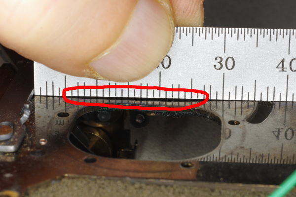Why 24-25mm? Because, at the low-speed setting, the bottom of this wire will touch the floor of the cast metal body which serves as a stop for the wire. A distance of 24-25mm (measured from the top edge of the speed-lever) will result in the ideal lever-position for the low speed. |