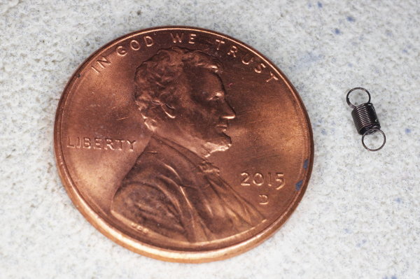 | Because I shot these photos using a macro lens with a 25mm extension tube, that spring looks large in the prior photo. But this photo gives you an idea of how small it actually is. It’s not much bigger than an ant. |