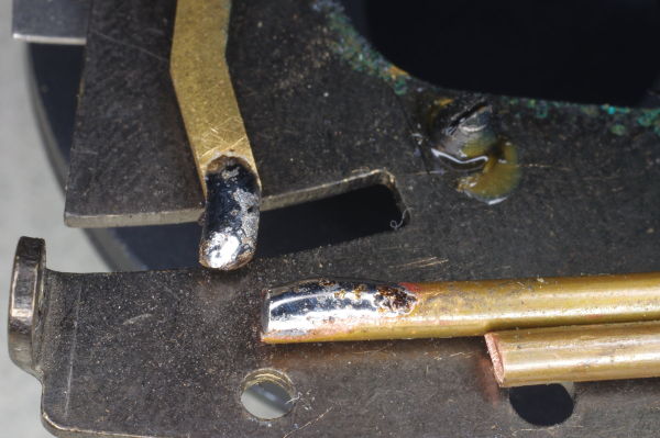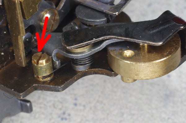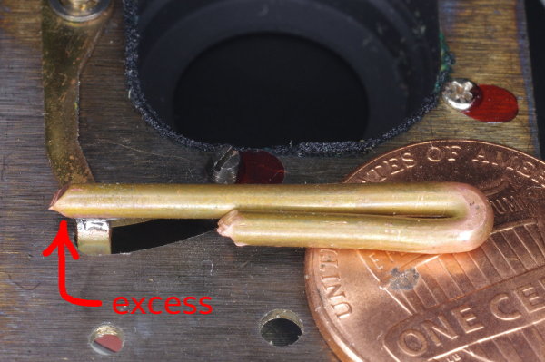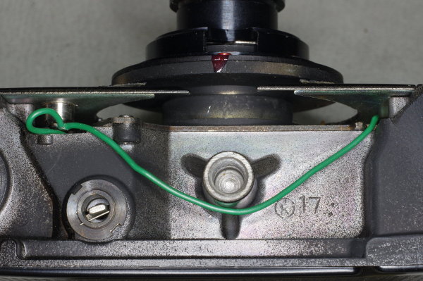 | I prefer that a shutter-button have a light touch, so I’ve stretched the spring some here to weaken it, reducing shutter-button force. |