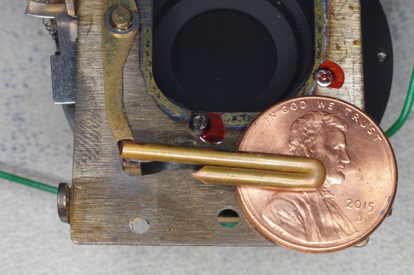 | This is the high-speed position. Note the outward angling of the wire. Given how close this wire got to the opening in the prior photo, I probably should have angled the wire a little more. |