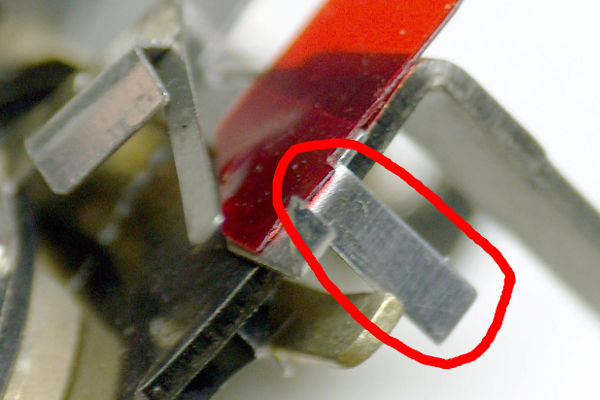| After it's been cut off, it won't interfere with the movement of the speed-lever. You don't need to break off half of a lever as we do with the Trip 35. |